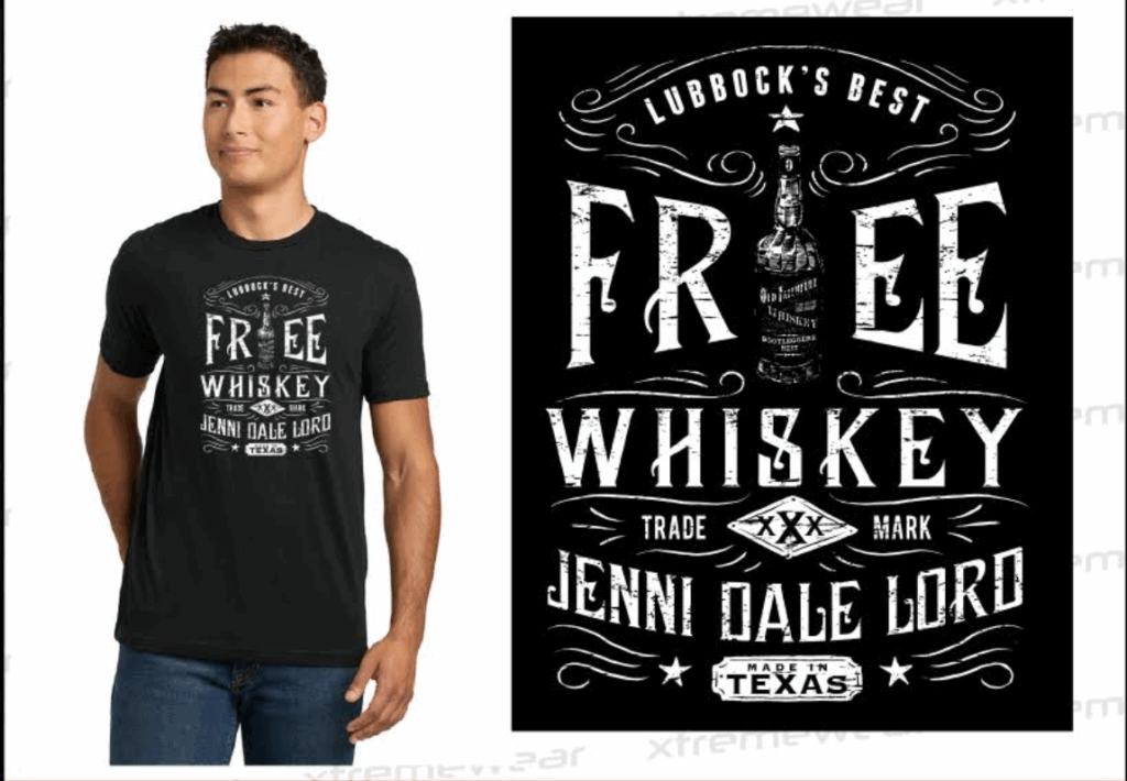Sport this super soft, pre-shrunk, unisex shirt celebrating one of Jenni Dale Lord Band’s signature songs – Free Whiskey. You’ll love it so much, you may want to get two. Only available in black.